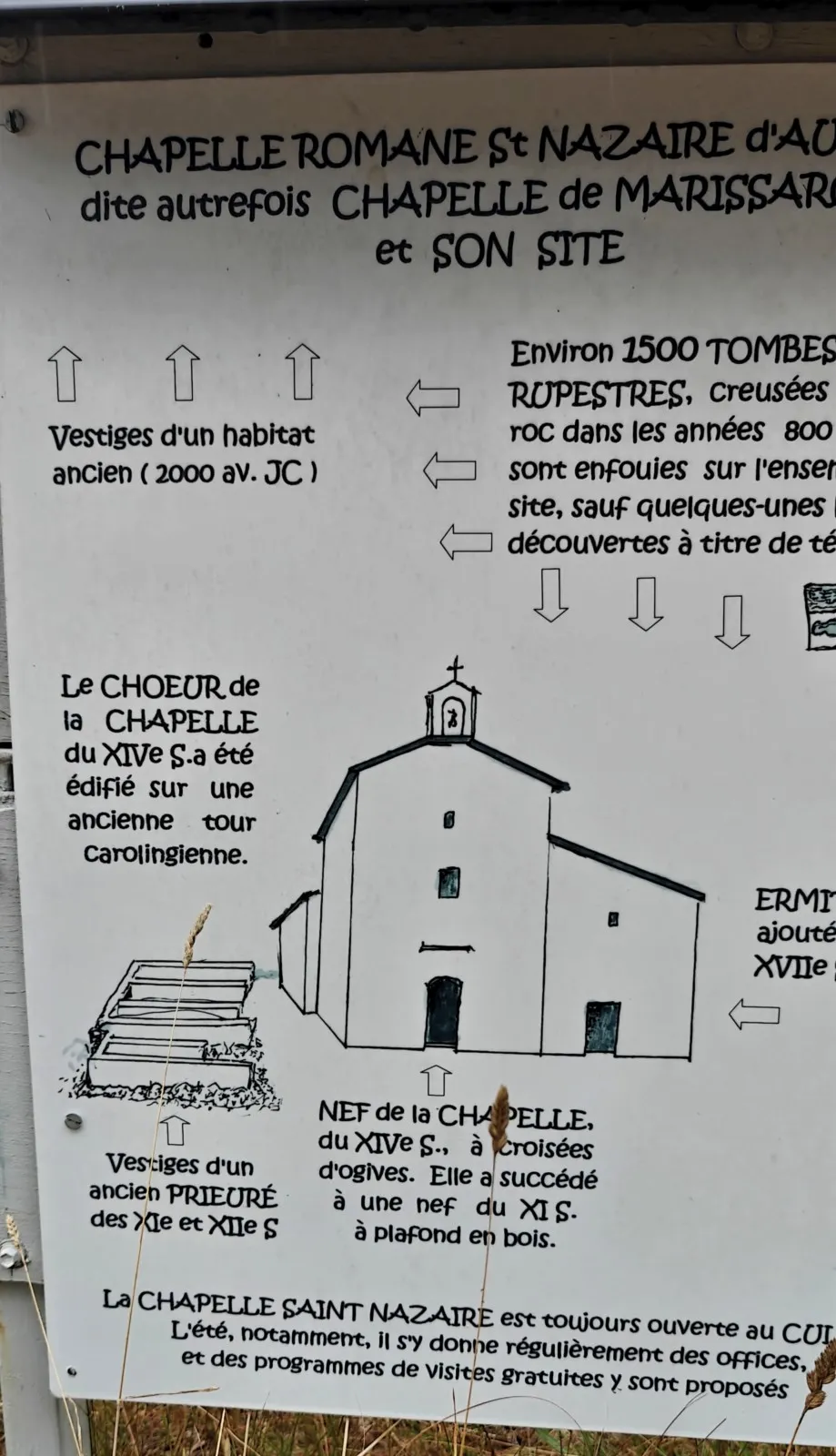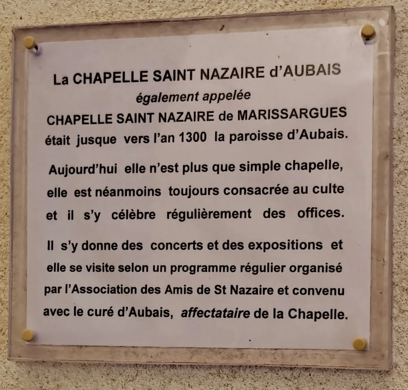 • Située à environ 1 km au sud-est du village d’Aubais, sur une table rocheuse dans un environnement de garrigue, cette chapelle domine les alentours et offre une vue allant jusqu’au littoral méditerranéen.