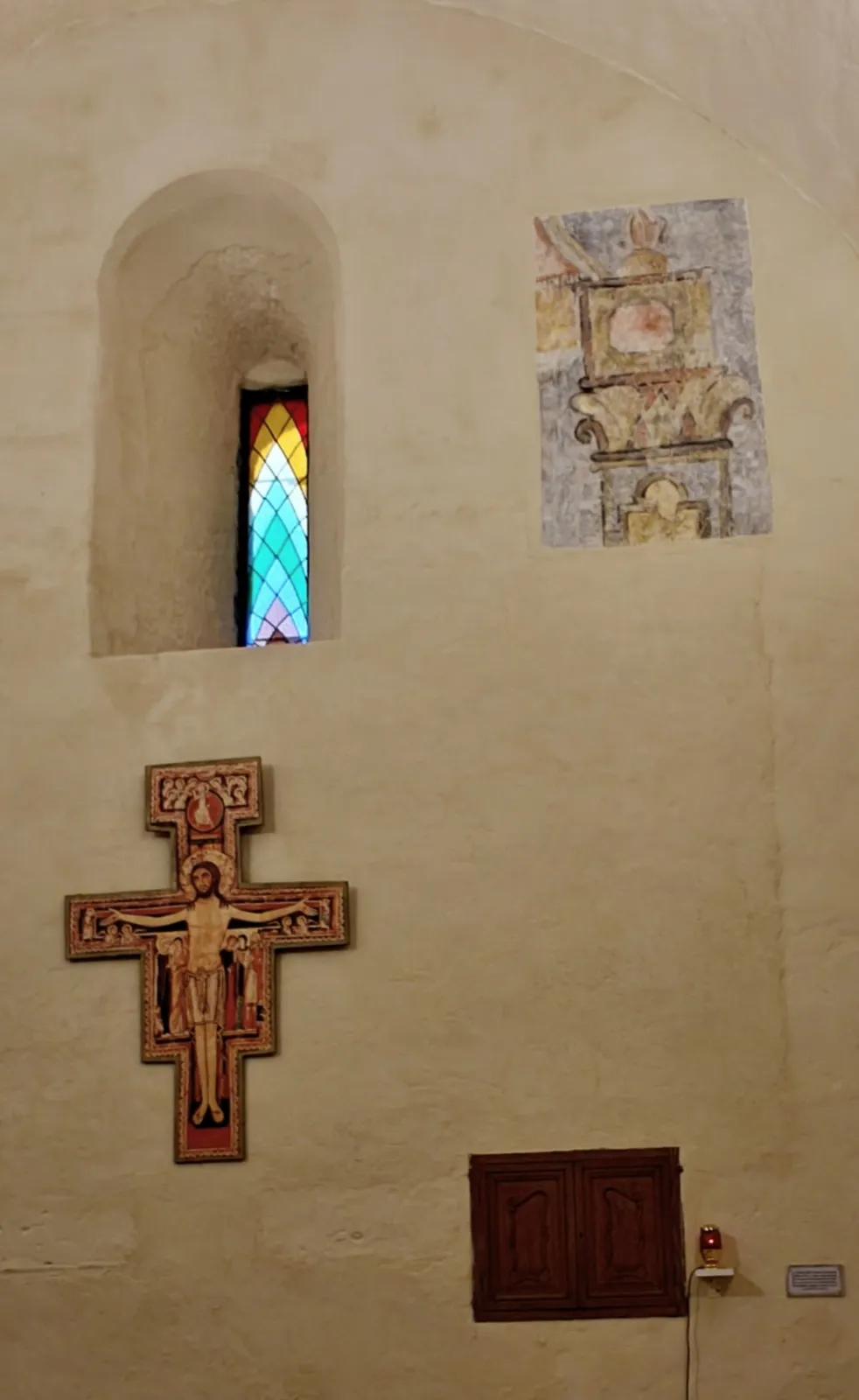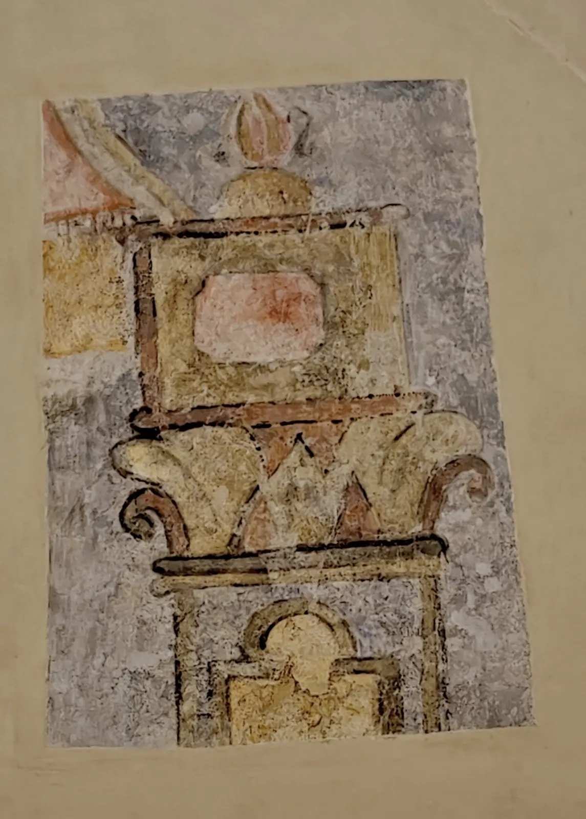 • Chevet plat : conservé depuis l’époque carolingienne, il conserve l’alternance caractéristique d’assises hautes et étroites, avec une grande baie cintrée.